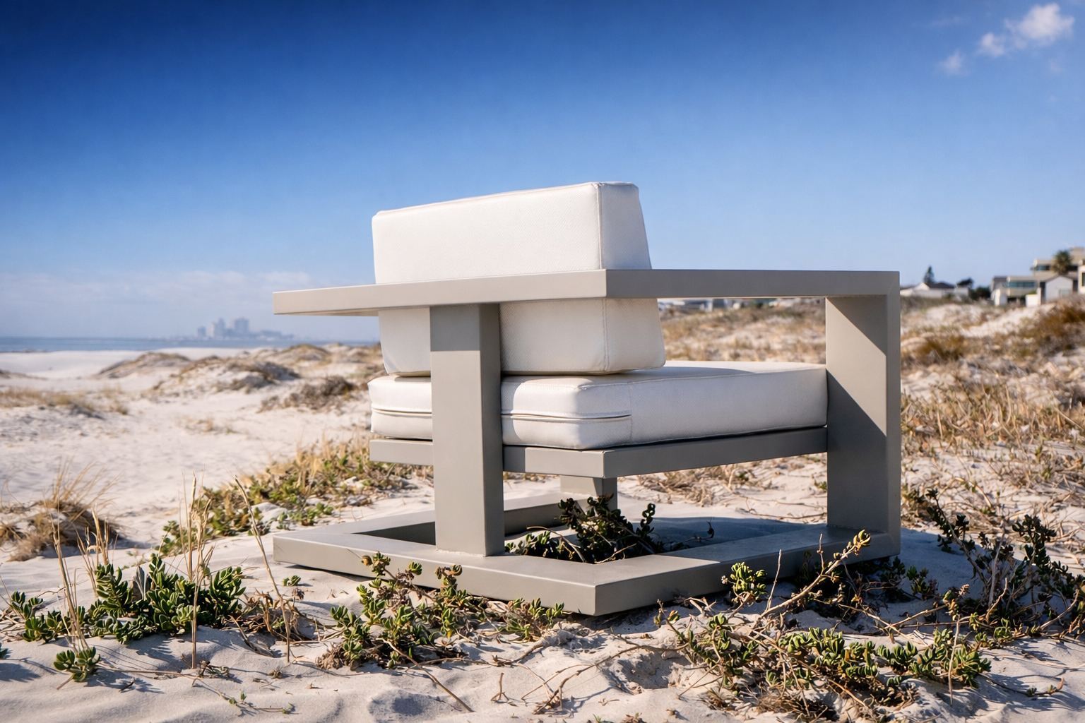 The frame is fully welded, not bolted, creating a seamless structure that enhances both strength and aesthetics. With no joints to loosen over time, this chair is built to last for years without compromise. Aluminium’s natural resistance to rust ensures it can withstand coastal air, rain, and sun—making it ideal for any outdoor environment.