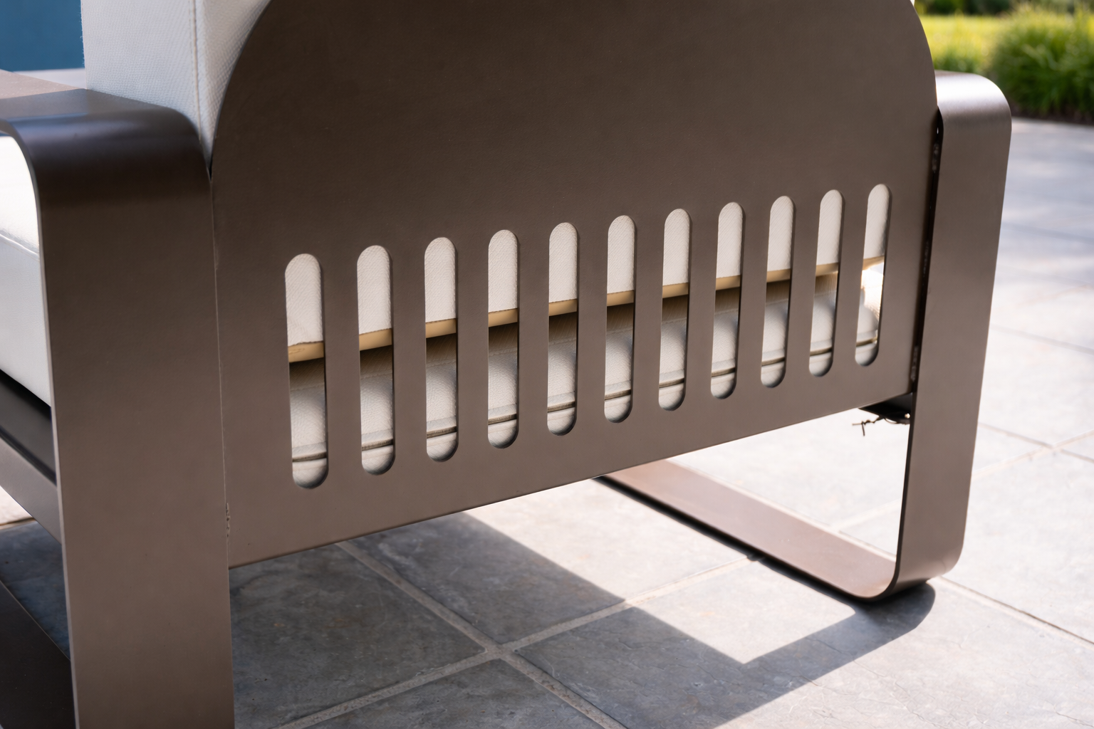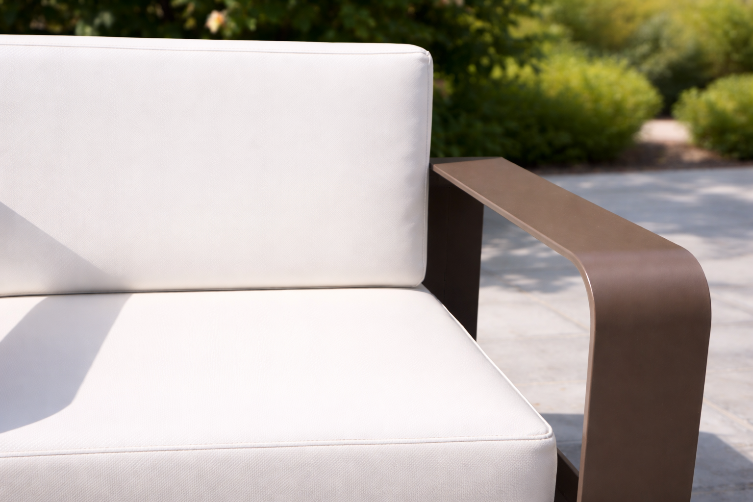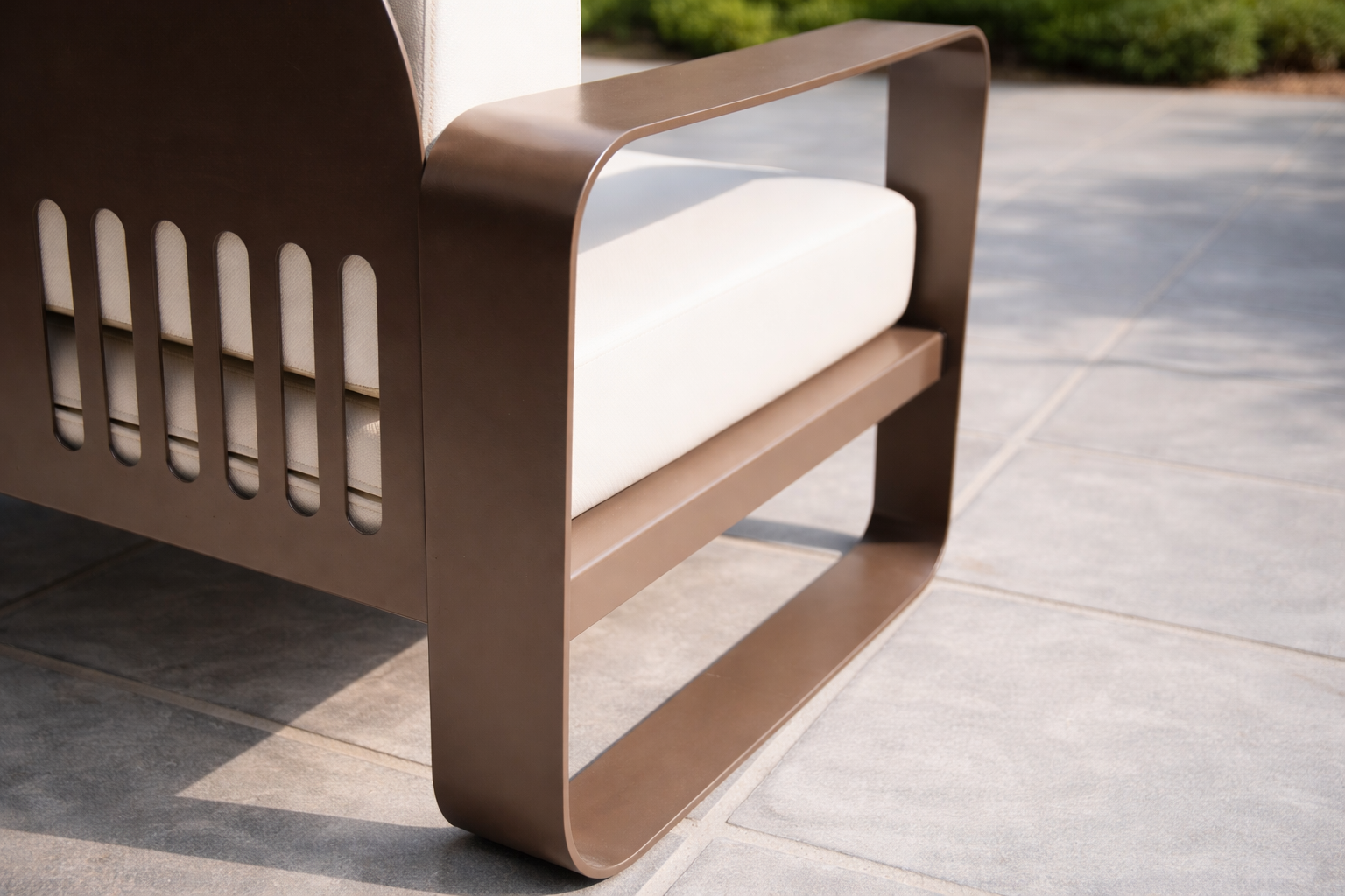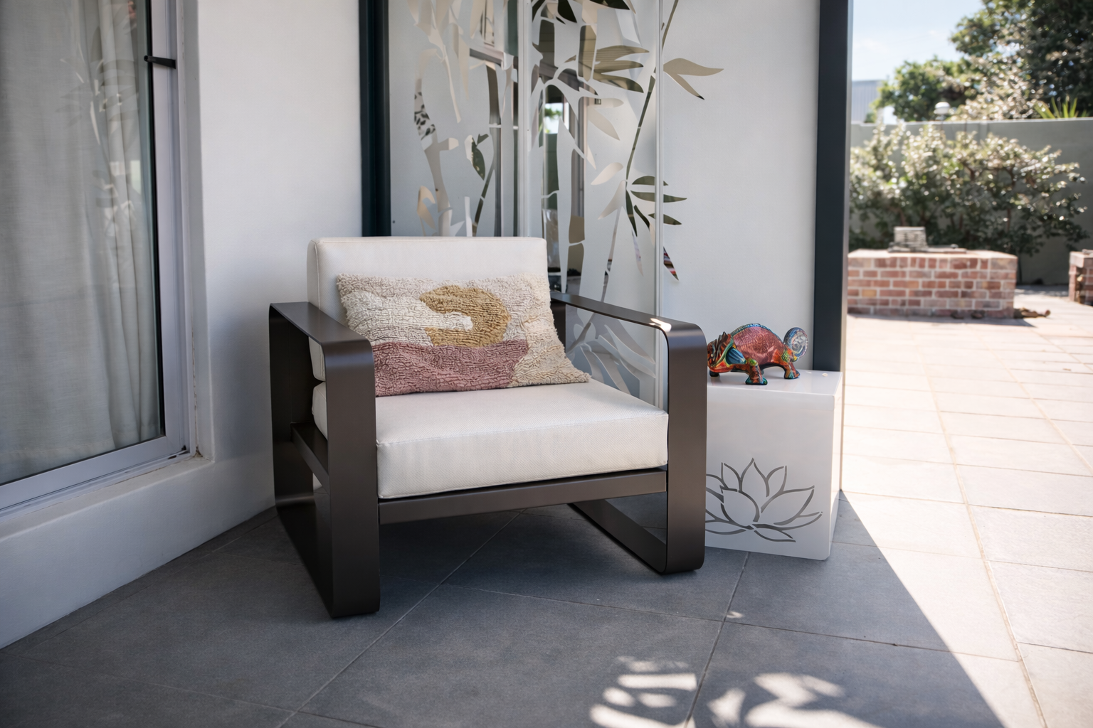 The fully welded frame creates a continuous, flowing structure that mirrors the chair’s curved aesthetic while ensuring long-term strength. Aluminium’s natural properties mean this chair will never rust, making it perfectly suited for coastal homes, patios, and outdoor environments exposed to the elements.