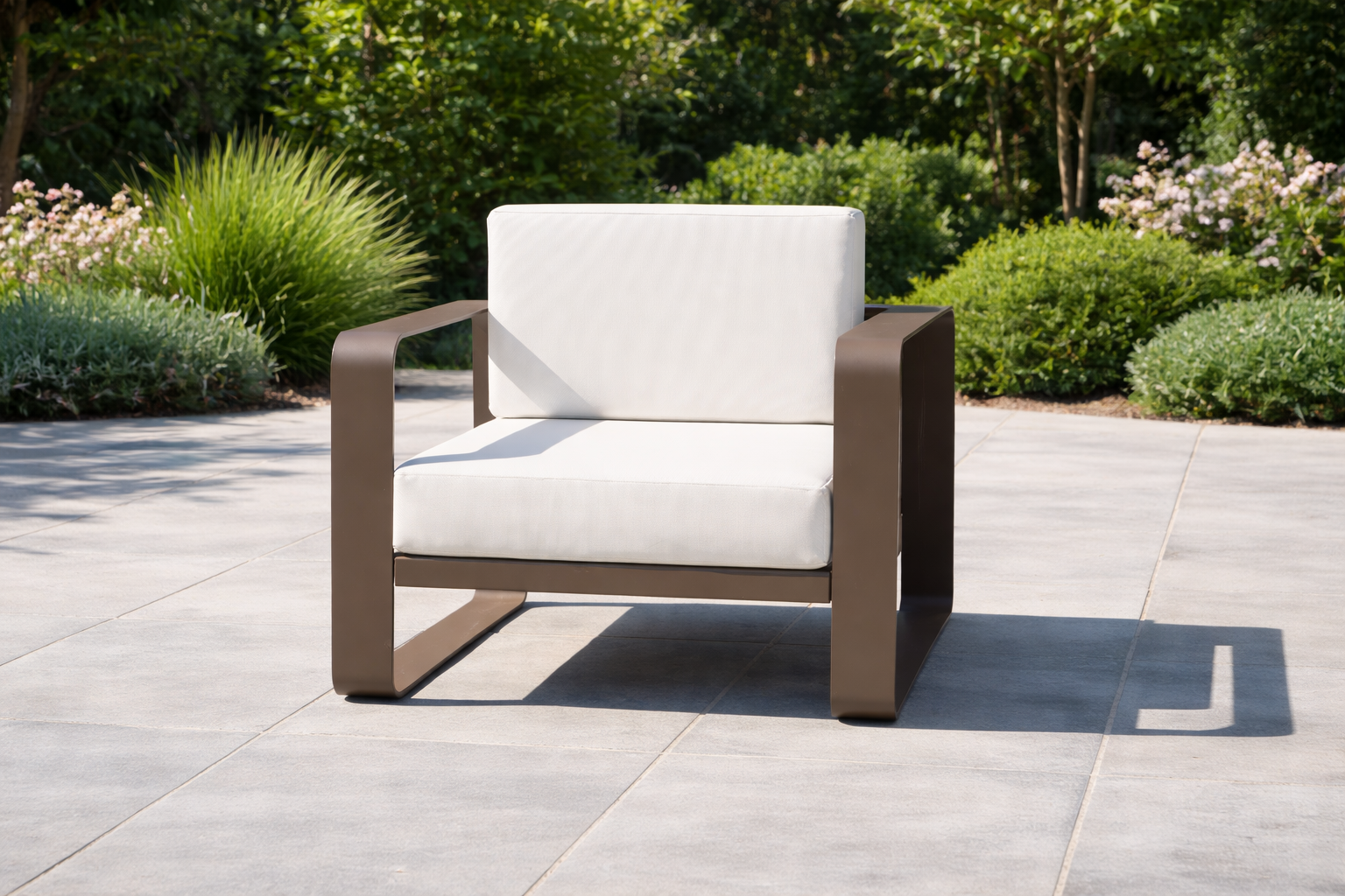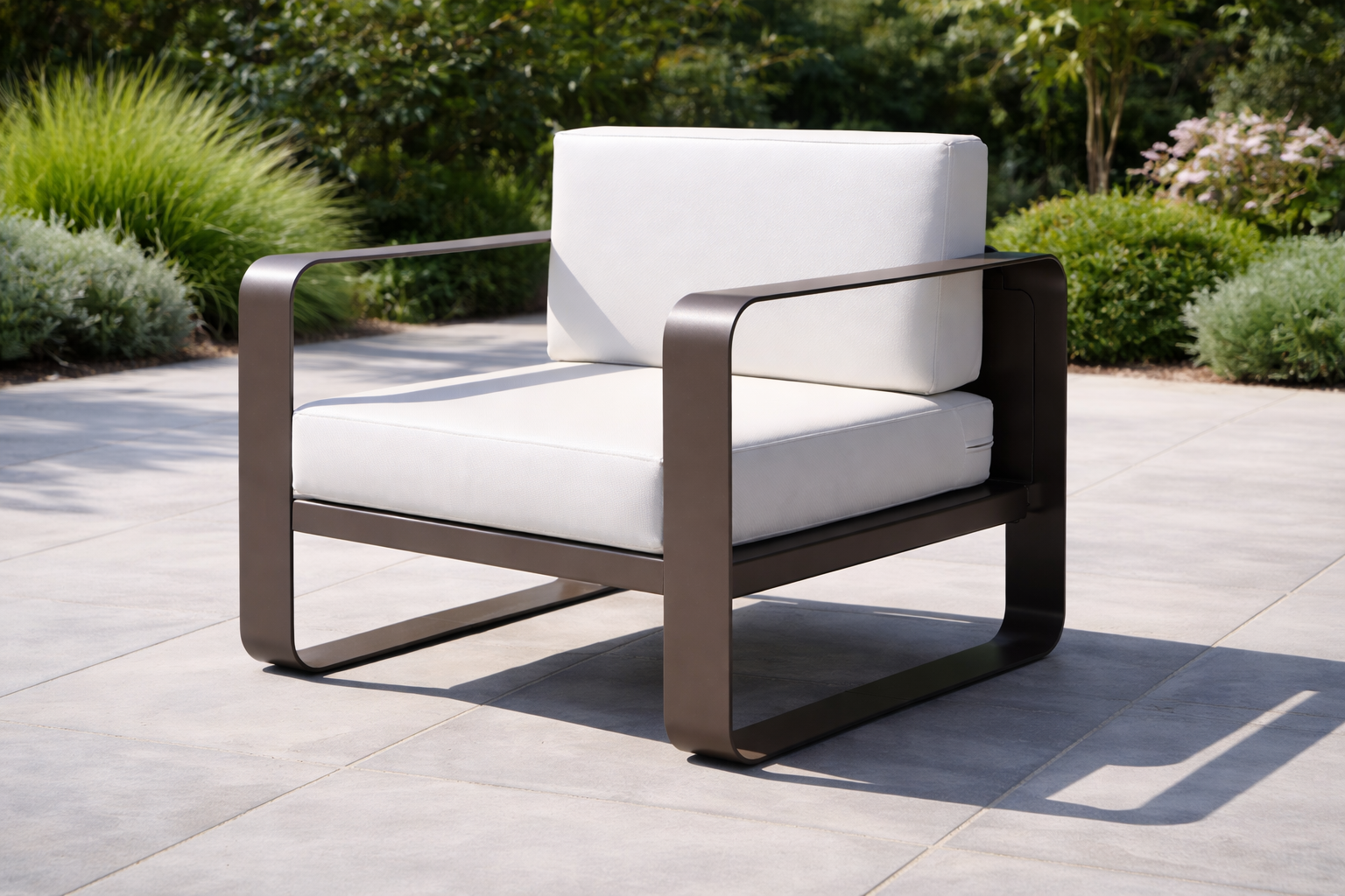Softened lines meet industrial strength in our Rounded Aluminium Lounge Chair—a piece designed to bring a more relaxed, inviting feel to modern outdoor spaces. With its smooth, curved armrests and low-profile silhouette, this chair offers both visual warmth and everyday comfort without compromising on durability.